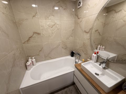Az ingatlan modern és praktikus kialakítású, a felújítás során a részletekre is nagy figyelmet fordítottak. A lakás önzáródó bejárati ajtóval rendelkezik, a nappaliban pedig hangulatos, beépített LED világítás került kialakításra, amely különleges atmoszférát teremt a mindennapokban.