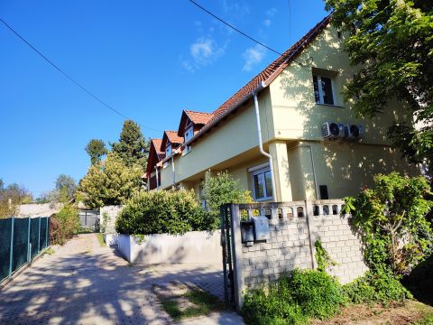 Hat szobás, jó állapotú, szigetelt, két szintes, alakítható, dupla komfortos ikerház terasszal és erkéllyel, 250 négyzetméteres gondozott kerttel, autó beállóval és igény szerint teljes bútorzattal!