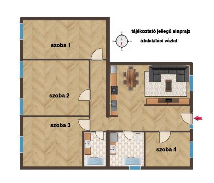 Remek adottságai és rengeteg ablaka miatt akár 5 szoba is kialakítható