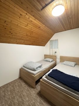 A hasznos alapterület két szinten 100 nm: az emeleten 3 szoba, konyha, nappali, fürdőszoba, az alsó szinten vendégfogadótér + egy 28 m hosszú pince található.